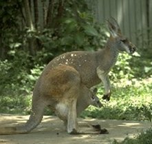 A marsupial is an animal that the mother places the young in a pouch to finish developing. This kangaroo and opossum both have a pouch for their young.