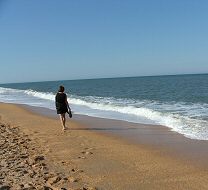 Linda could hardly wait to walk in the sand of an ocean beach near